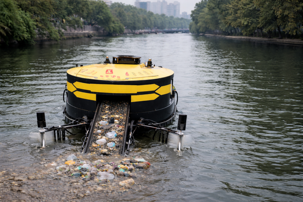 The Solar-powered vessels utilize Machine Learning algorithms to analyze water quality in real-time, checking parameters such as pH and oxygen levels. Once their collection bins are full, the robots Autonomously navigate back to the dock for self-dumping before returning to continue their patrols. This creates a fully automated, closed-loop system for river maintenance.